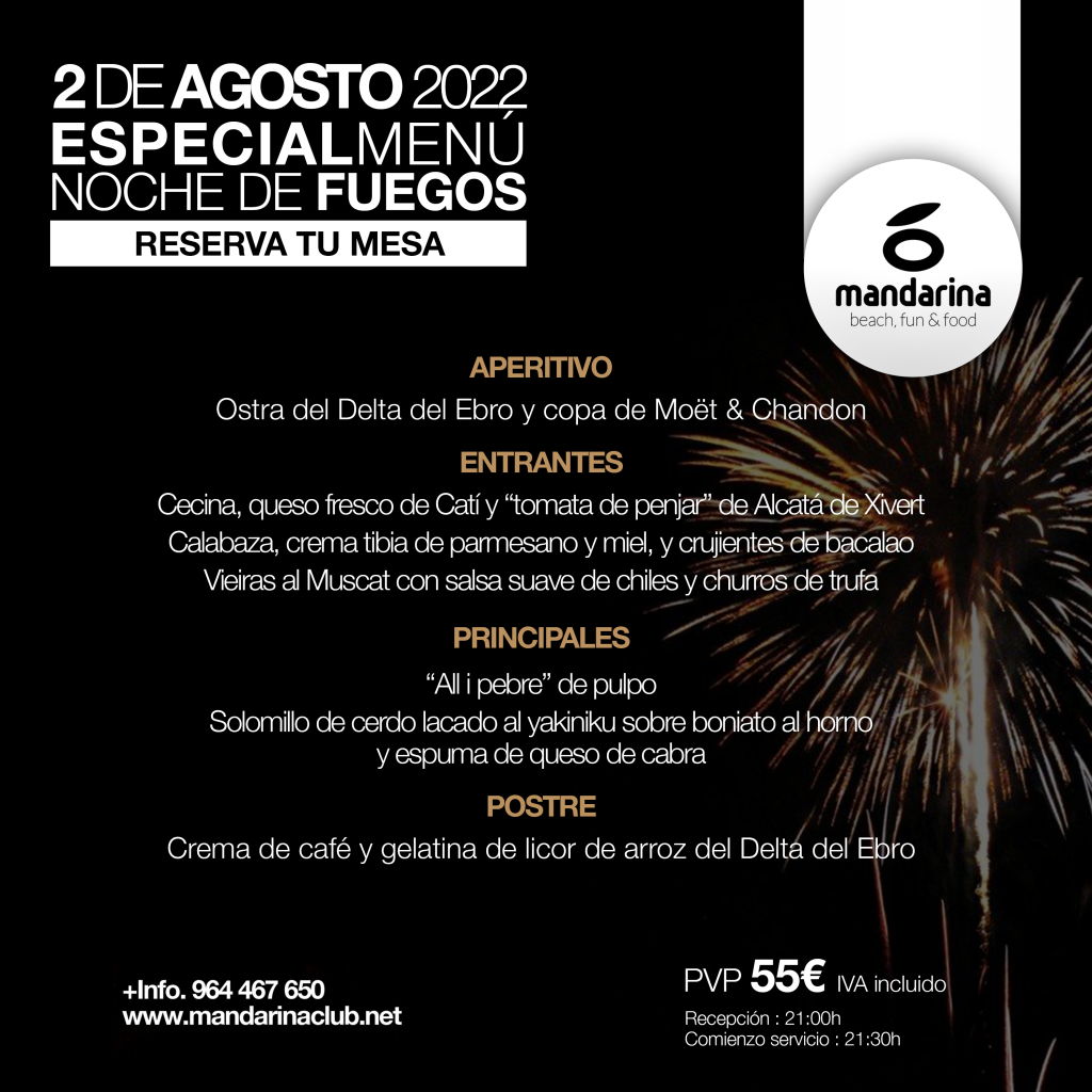 Menú especial para cenar disfrutando del espectáculo piromusical con las mejores vistas de Peñíscola .
